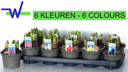≥ 10 stks -,- Colli 43 Potmaat (cm) 12 cm Inhoud 10 Hoogte (cm) 15 cm Aantal 430 Aant bloem per pot 90 Fustcode 480 Rijpheid 2-2 Aant bollen 3 Land van herkomst NL Kwaliteit A1 Kweker VOF R. & A. Warmenhoven -,-≥ 10 stks -,-Hyacin Gem 6 Kl